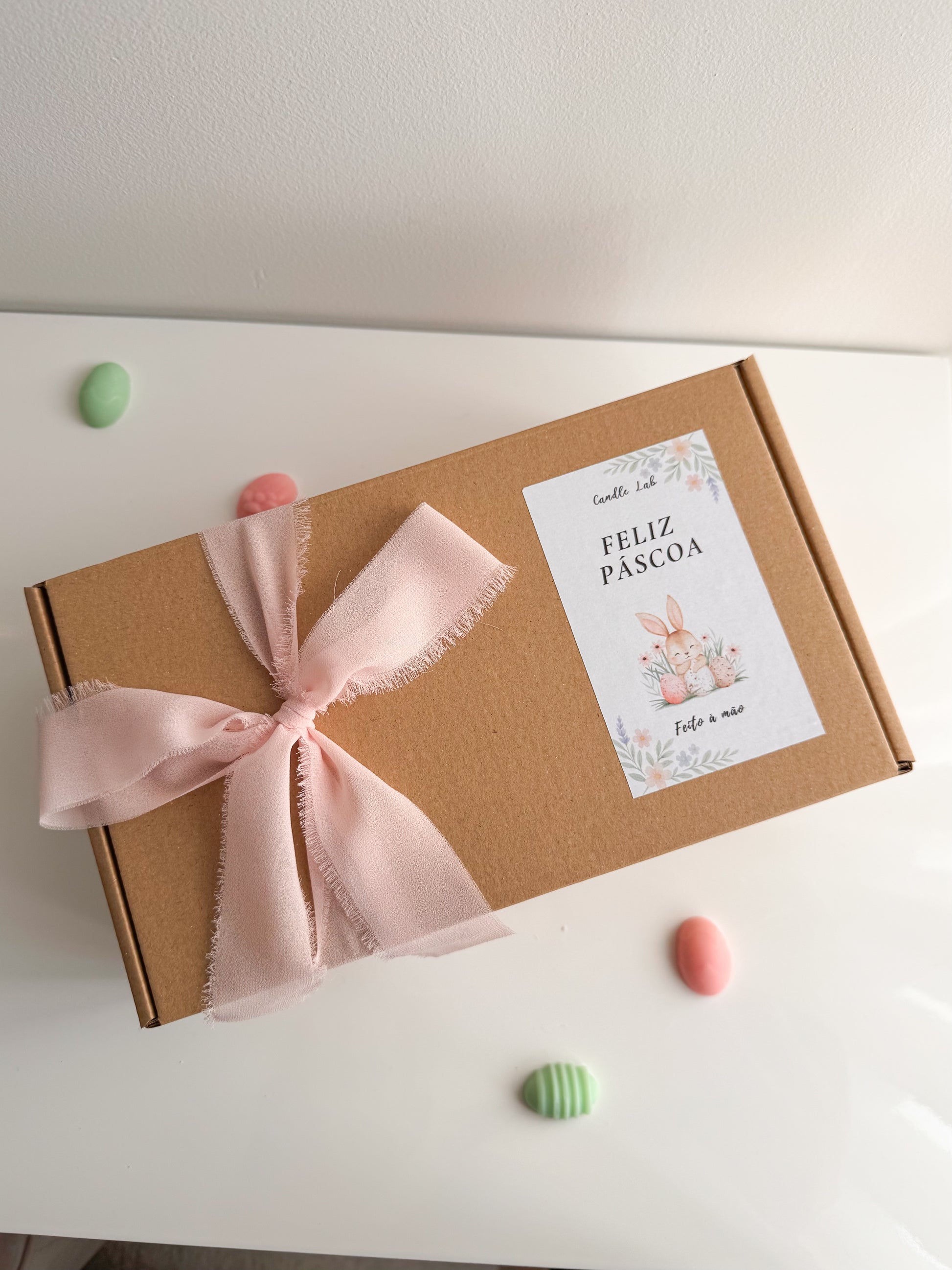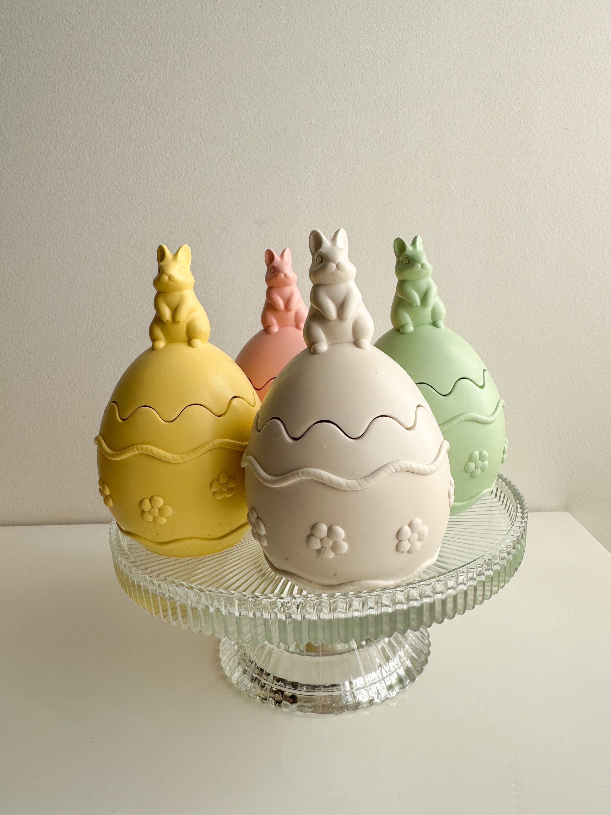 Uma vela irresistível que combina o clássico ovo da Páscoa com um adorável coelhinho.
